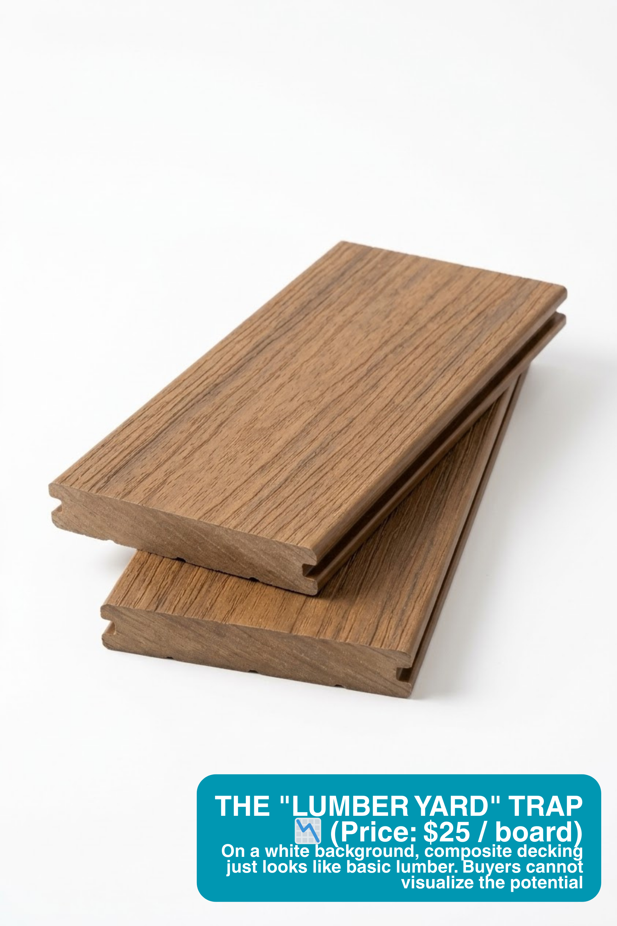 Here is the brutal truth for outdoor brands: Nobody wants to buy raw materials. On a white background, composite decking just looks like basic lumber. A landscaping boulder looks like a heavy rock with expensive shipping costs. When high-end buyers look at isolated materials, they cannot visualize the final architectural masterpiece. This forces your sales team to compete purely on commodity pricing.