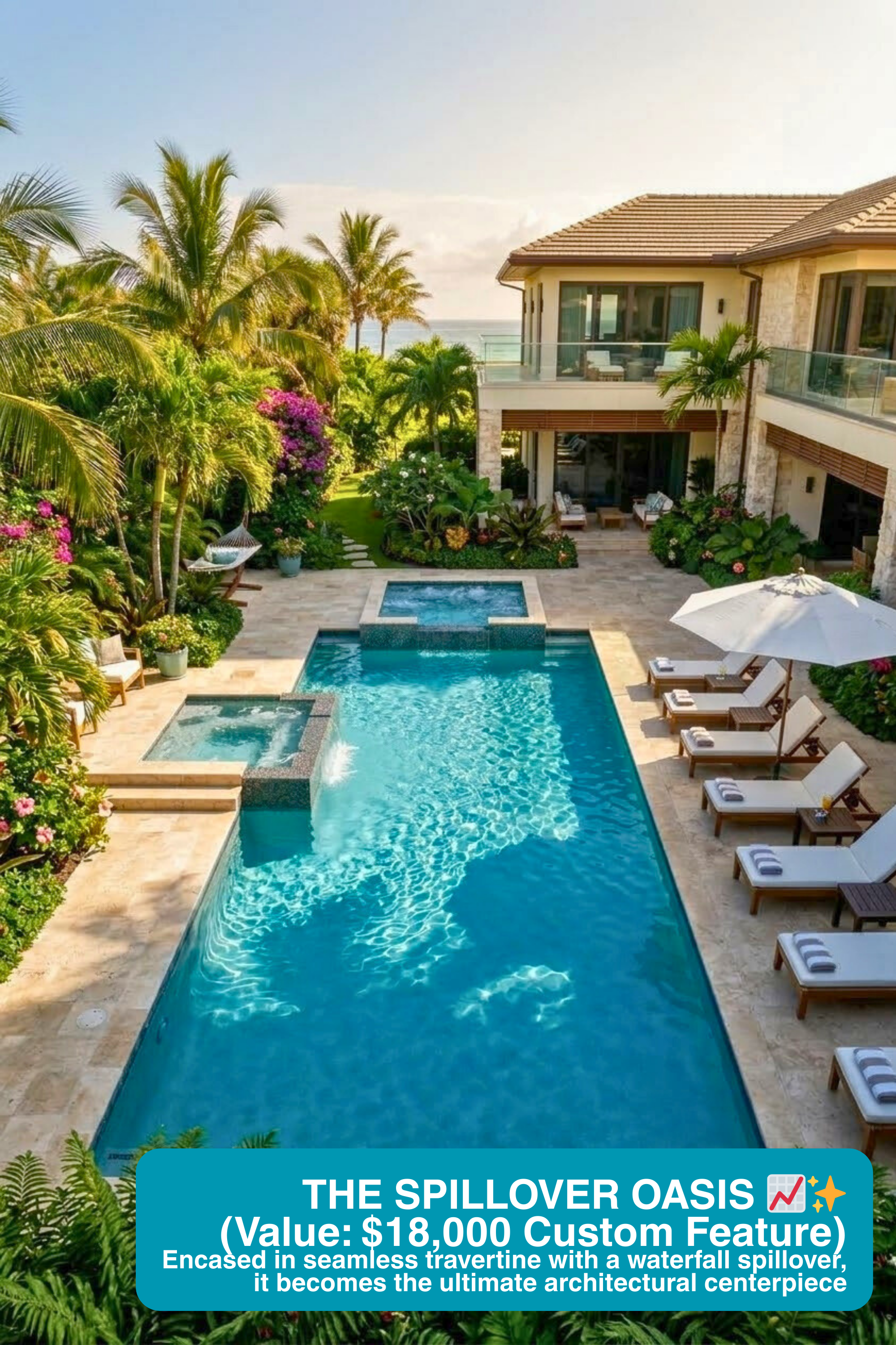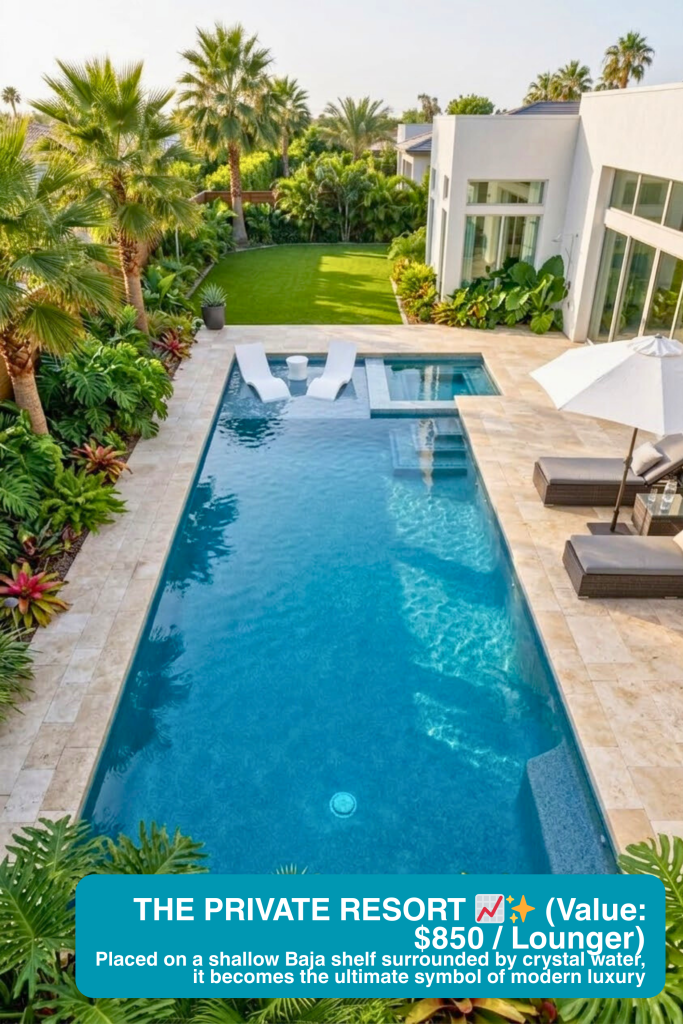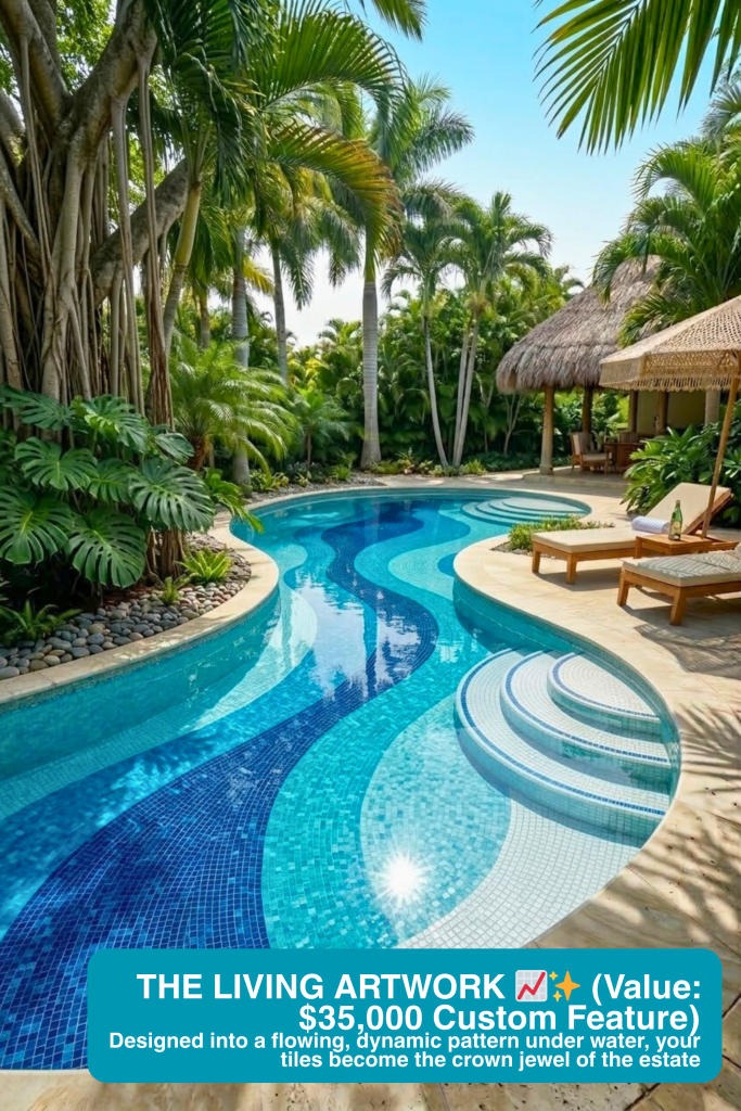 Without the refraction of water and sunlight, a sheet of blue mosaic squares looks exactly like cheap public restroom tiling. By designing a sweeping, dynamic swirl pattern under the water of a tropical freeform pool, we trigger a neuro-architectural feeling of calm and flow. You stop selling $4/sq ft tiles and start selling a mesmerizing $35,000 custom aquatic centerpiece.