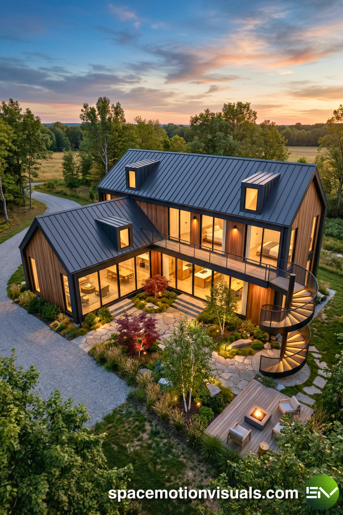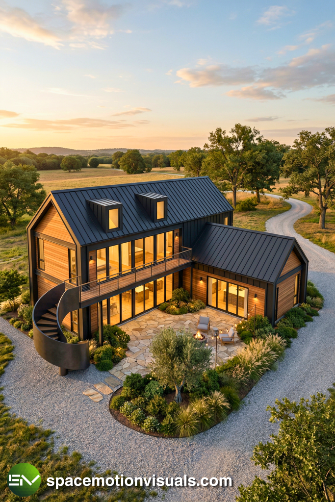At Spacemotion Visuals, we specialize in visualizing niche architectural trends. We designed a coherent Barndominium concept that rejects “massiveness” in favor of sophisticated simplicity and smart, compact massing.