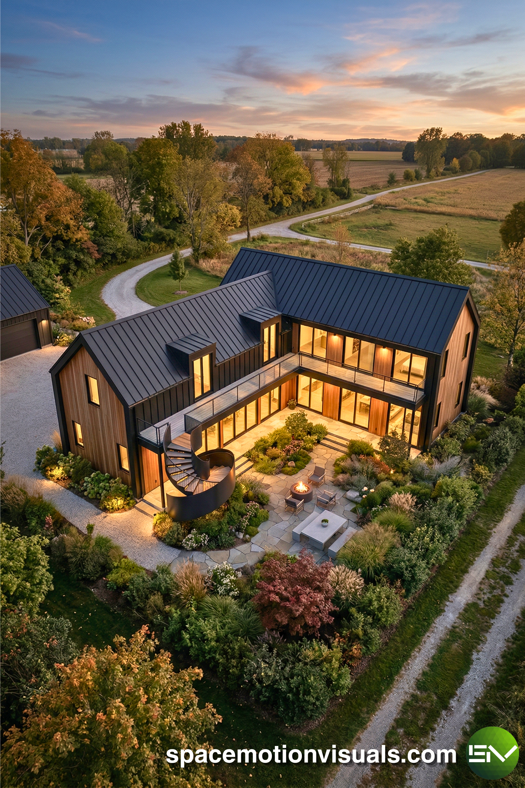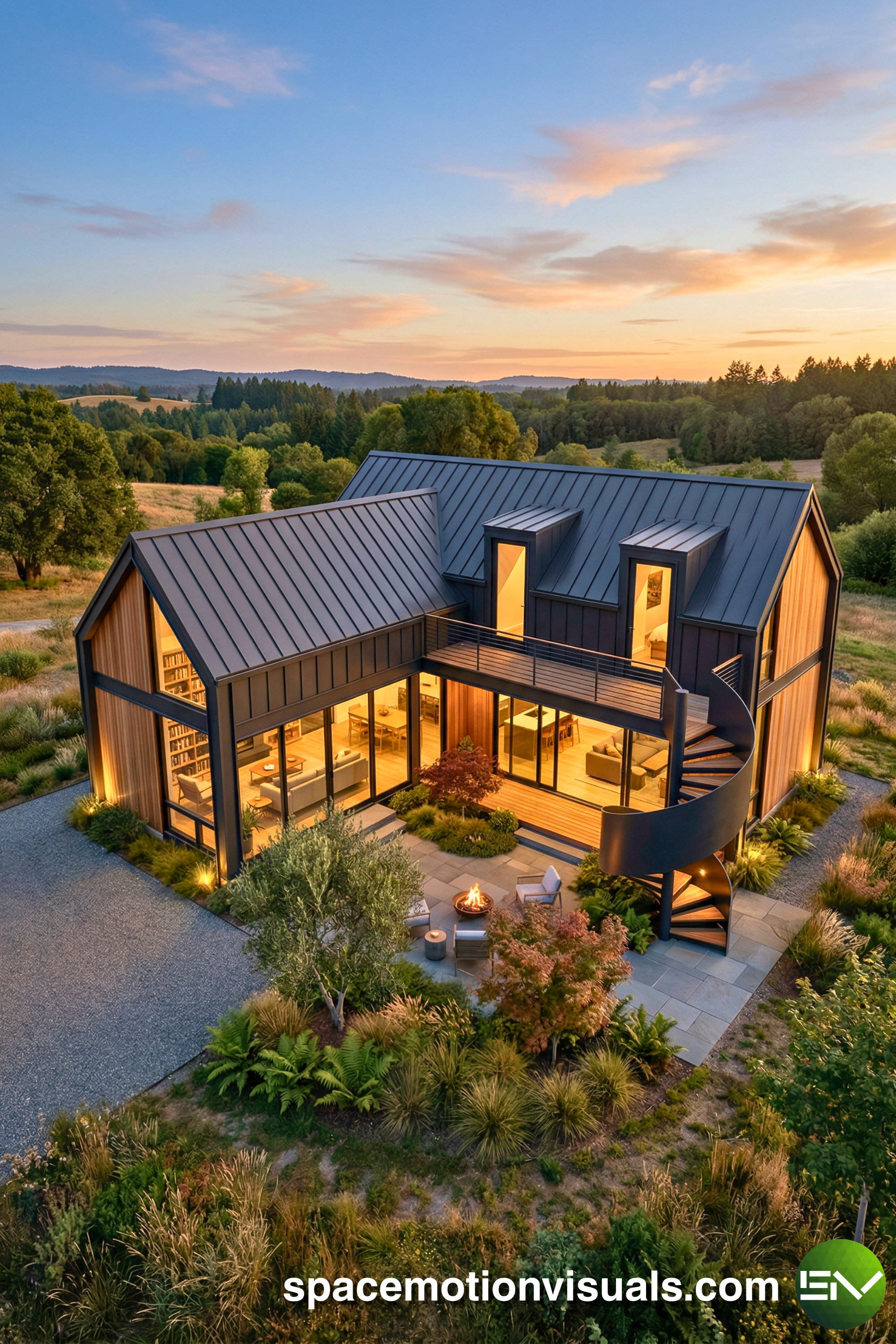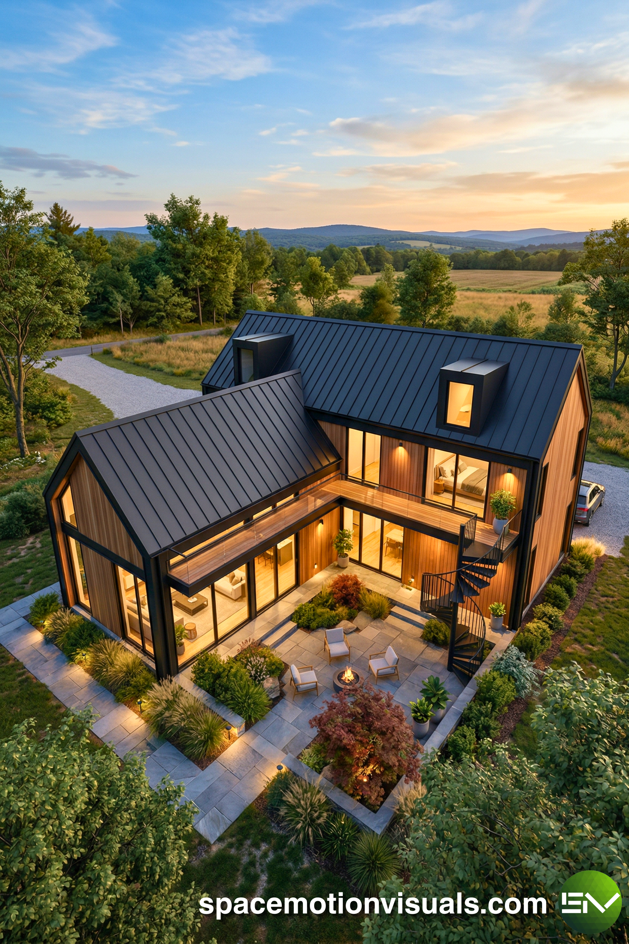 At Spacemotion Visuals, we specialize in visualizing niche architectural trends. We designed a coherent Barndominium concept that rejects “massiveness” in favor of sophisticated simplicity and smart, compact massing.