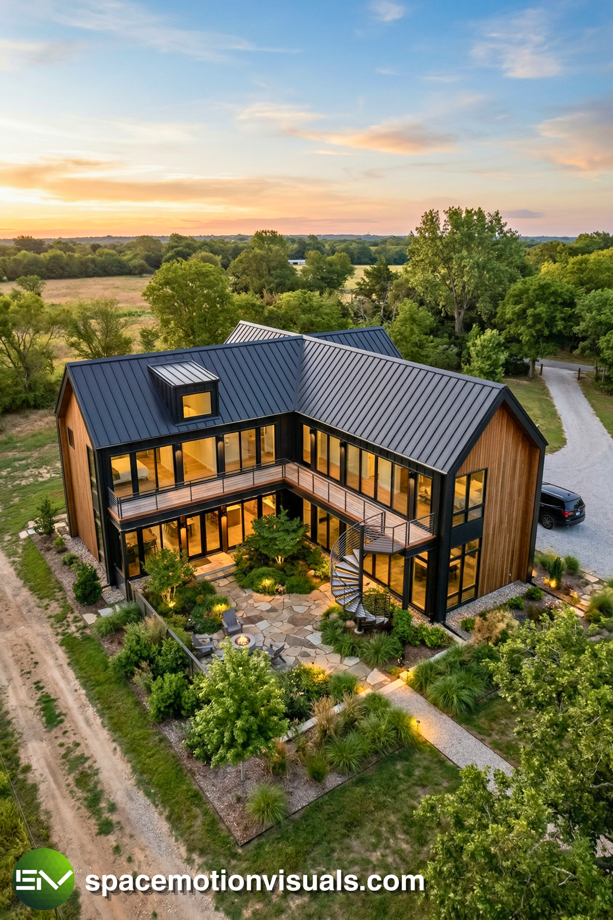 Let us visualize your unique Barndominium concept first. At Spacemotion Visuals, we can help you test different cladding materials, roof orientations, and balcony placements in photorealistic 3D.